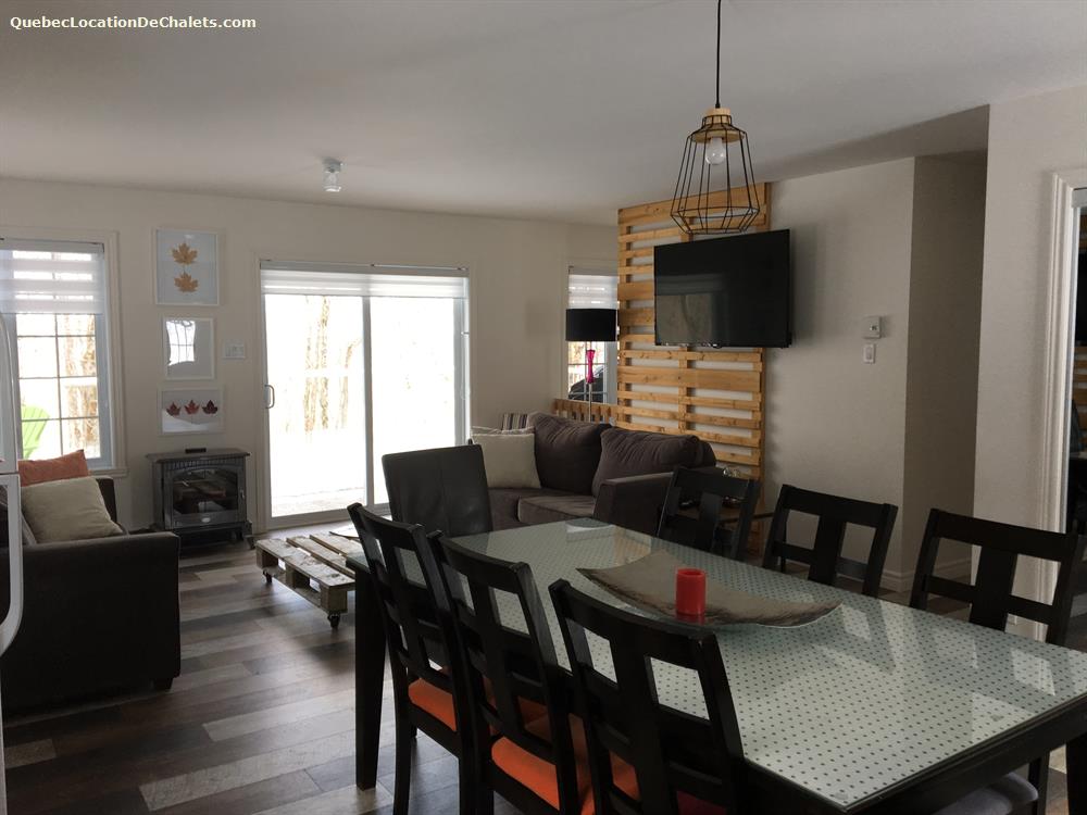 Le Chalet 2 Chambres avec une capacité de 6 personnes vous propose deux chambres fermer disposant d’un lit Queen, une salle à manger complet et un salon avec un divan-lit et foyer. Le chalet Deux chambres est un de nos 6 chalets suivent que nous pouvons louer pour un plus petit groupe à moindres couts : L`Alpin, Chevalier,tasserie,Petit Poucet,Gandalf .( il a aucun partage de chalet avec un autre groupe . La location vous donnera droits à 2 chambres, un salon, cuisine et une salle de bains (il n`aura personne d`autre a pare votre coupe dans le chalet). Notre Hébergement le chalet 2 Chambres est situer sur le Magnifique site du Domaine des Montagnais tous près du Parc National du Mont-Mégantic et l'astrolabe situer à Notre-Dame des bois (5 km). Le Domaine des Montagnais est un site enchanteur offrant des hébergements de qualité supérieure offrant une vue époustouflante sur les montagnes des environs. Le chalet est entièrement équipé (literie, internet sans fils, matériel de cuisine…) et il vous donne droit aussi à l`accès à la piscine (en été) et au terrain du Domaine de Montagnais. Avec 1 acre de terrain, votre tranquillité sera assurée et vous ressentirez un sentiment de calme, et décrocherez de la trépidante vie moderne. Un patio confortable permet des repas à l'extérieur. Vous pouvez aussi veiller le soir au son des crépitements d'un bon feu de bois, en dégustant des guimauves grillées! Situer à seulement 12 Km d`une magnifique plage avec marina et 20 minutes de Lac-Mégantic. Il est pourvu d'une très grande galerie et est situer à quelque pas de notre magnifique piscine. Les amateurs de motoneige vont l`adorer car il est accessible en motoneige Que ce soit pour une réunion familiale, entre amis ou une réunion d`affaire, ce magnifique chalet a tout pour vous assurer un séjour parfait.