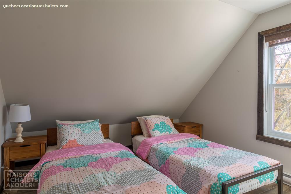 En entrant le chalet, vous aurez un grand garde-robe pour y mettre vos équipements d'été, ou encore, vos vêtements d'hiver, après une belle journée de plein-air. La cuisine, la salle à manger et le salon sont à aire ouverte et offrent une belle lumière tout au long de la journée. La cuisinie est entièrement équipée et très pratique pour cuisiner à plusieurs, grâce à son îlot. Au salon, vous trouverez notamment le foyer, qui sera bien apprécié lors des séjours d'hiver. Une salle de bain avec douche complète le rez-de-chaussée. Les 3 chambres à coucher fermées de la propriété se trouvent à l'étage, ainsi qu'une 2e salle de bain avec baignoire.