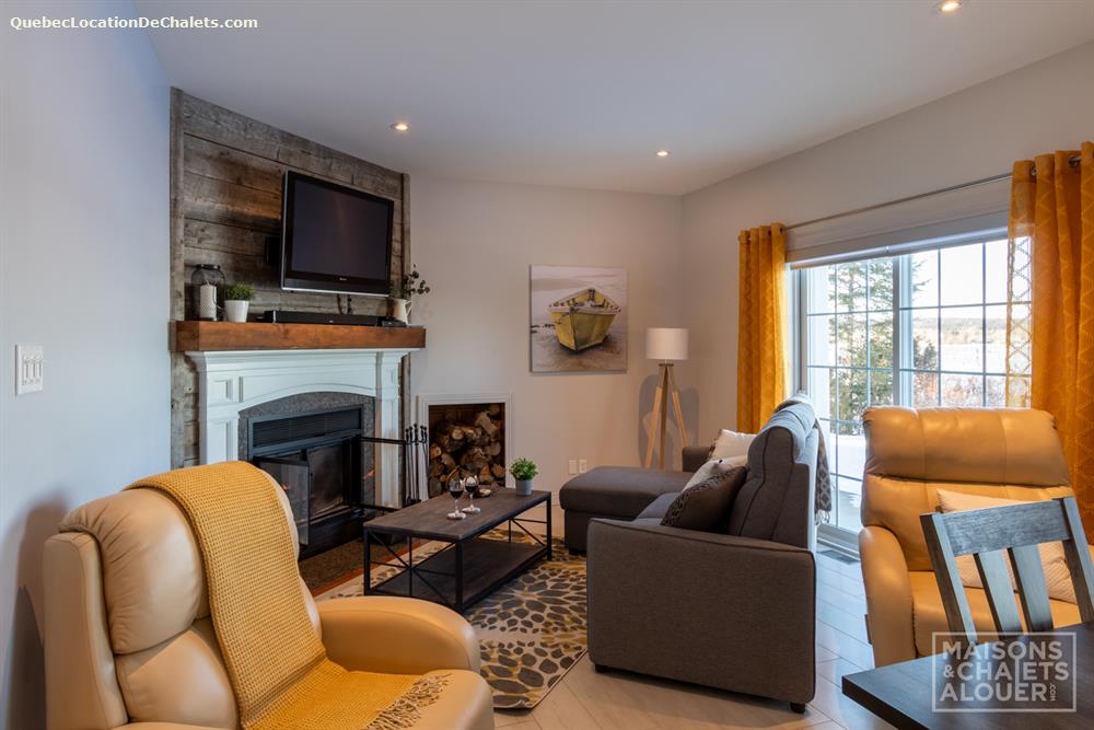 Après une journée bien remplie, reposez-vous dans les jardins ou sur la terrasse, assis bien confortablement, tout en appréciant la vue sur le lac. Vous pourrez préparer vos repas sur le BBQ et les déguster dehors au grand air. Ce chalet à louer possède un spa privé 4 saisons ainsi qu'un foyer extérieur avec bois fourni vous attendront le soir venu, en espérant que le ciel soit dégagé pour que vous puissiez admirer les étoiles!