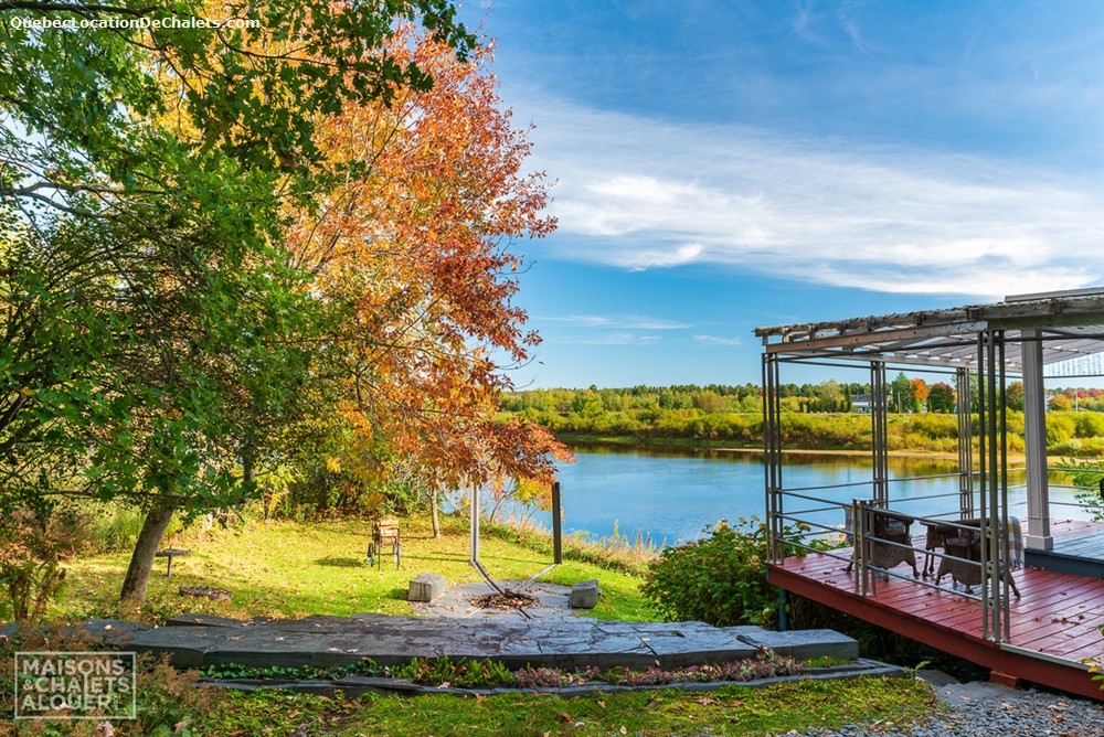 La maison se distingue notamment par ses nombreux jardins, illuminés en soirée. L'ambiance y est des plus chaleureuses. Vous pourrez passer vos soirées d'été à l'extérieur, sur la terrasse surplombant la rivière. La rivière est également agréable pour la baignade, tout dépendant de son niveau d'eau et est accessible par un descente en pente. Le fond de l'eau est en petites roches, donc pensez à apporter des souliers d'eau. Vous trouverez également sur place deux kayaks pour vous permettre d'aller naviguer sur la rivière et, pourquoi pas, y taquiner le poisson. Plusieurs espèces de poissons sillonnent les eaux, dont l'achigan, le doré et la perchaude. Terminez vos journées autour d'un feu de foyer extérieur, sur le bord de l'eau, à contempler le ciel étoilé de la campagne.