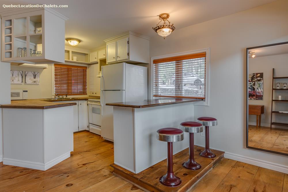 Séjours mensuels et saisonniers disponibles sur demande Description de la demeure • 2 chambres (1 lit queen/1 lit double) • 1 divan-lit double • Cuisine équipée • Accès Internet haute vitesse • Grande télévision murale de 50 pouces • Quai privé avec kayak • Magnifique terrasse • BBQ • Grand stationnement
