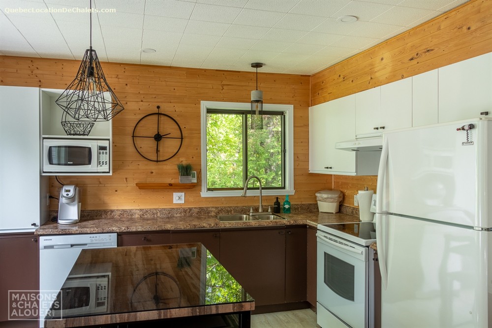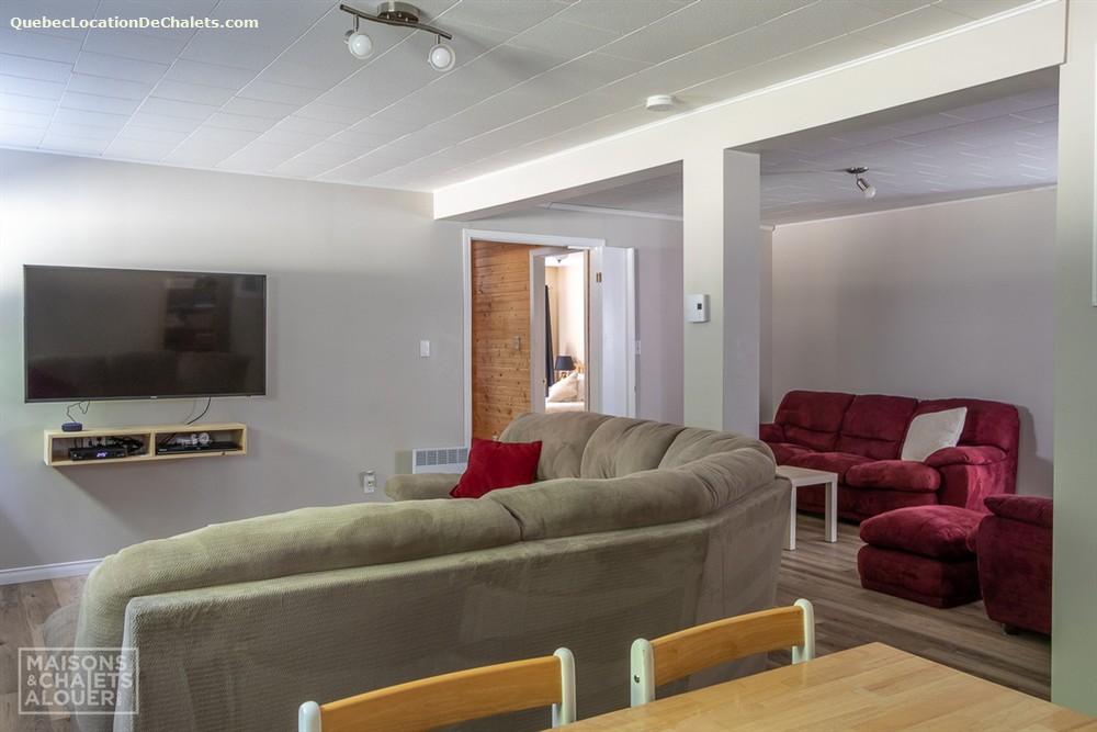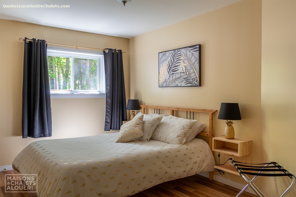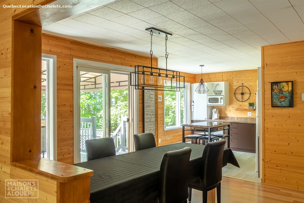 Ce chalet se distingue par son côté chaleureux, agrémenté par beaucoup de boiseries, notamment dans les aires communes de la maison. Le salon est très agréable pour y relaxer près du poêle à bois vitré, sans oublier son accès à la terrasse extérieure. La cuisine, annexée à la salle à manger est lumineuse grâce aux nombreuses fenêtres donnant sur le lac. Vous trouverez également 2 chambres fermées et 1 salle de bain sur cet étage. Le sous-sol est une grande salle familiale divisée en trois zones : une section jeux pour les cœurs d'enfants, une section télé pour se regrouper et une section relaxe pour se détendre. Le sous-sol possède également 2 chambres fermées ainsi qu'une seconde salle de bain complète.