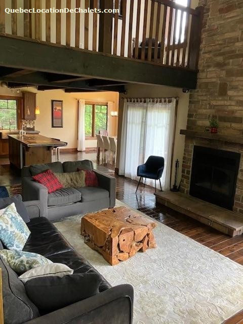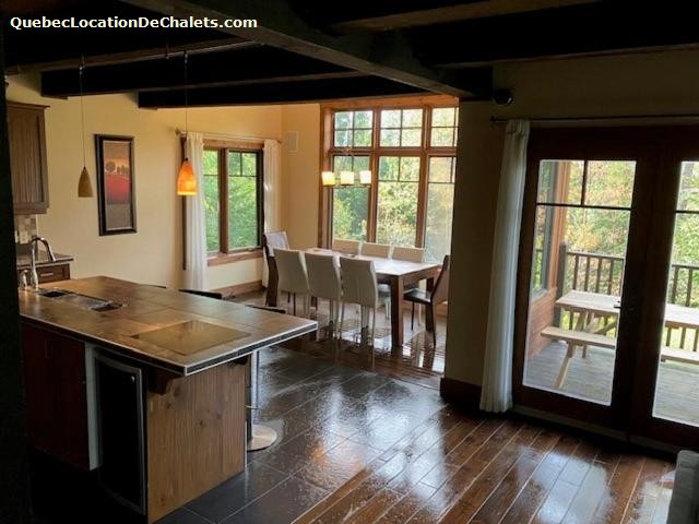 L'aménagement intérieur est idéal pour des vacances en famille et entre amis. La pièce centrale à aire ouverte comporte un salon avec magnifique foyer au bois et un téléviseur à écran plat, une cuisine bien équipée et une salle à manger fenêtrée sur une nature généreuse. Deux chambres à l'étage supérieur, une chambre au rez-de-chaussée et deux lits queen à l'étage inférieur, de même qu'une salle de bain complète sur chacun des trois niveaux permettent à tous des moments d'intimité. Tous les lits sont de format Queen. À l'étage inférieur, la salle familiale est équipée d'une table de billard et d'une grande télévision à écran plat. Cette résidence de vacances spacieuse et décorée avec beaucoup de goût, est en outre à moins de 35 km des villages de Sainte-Adèle et de Saint-Sauveur-des-Monts.