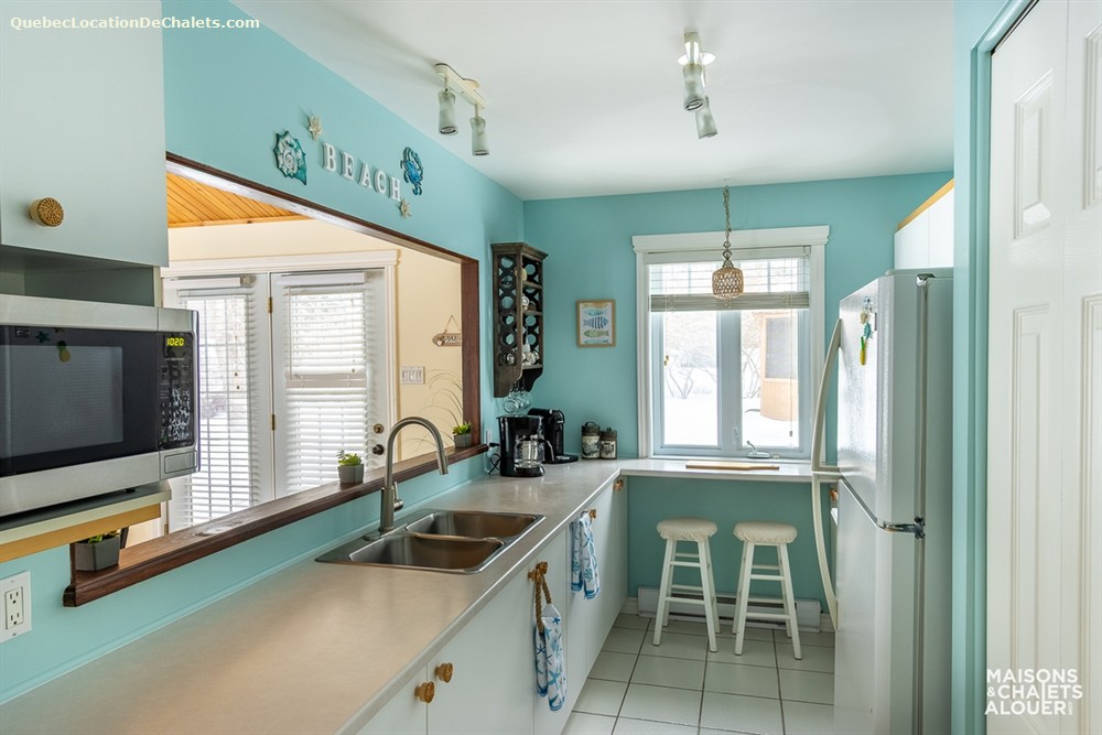 Rez-de-chaussée : Cuisine, salle à manger et salon (1 divan-lit) / Chambre #1 : 1 lit Queen / Chambre #2 : 1 lit Queen / Salle de bain complète / Salle d'eau