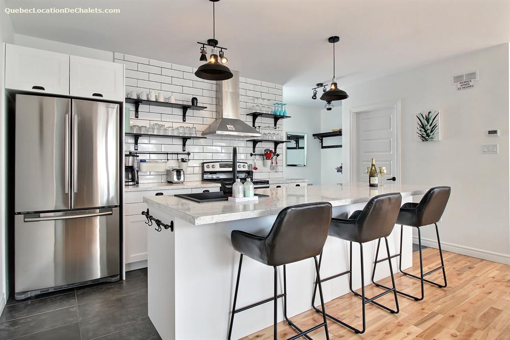 Venez profiter de toutes les commodités que l'on peut souhaiter lorsqu'il est question de se retrouver entre amis ou en famille. Un SPA, une table de billard, un téléviseur intelligent situé au salon tout près d'un foyer à combustion lente donnant chaleur et look incomparable au chalet ainsi qu'une salle à manger avec vue sur les pentes du Massif.