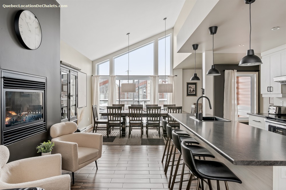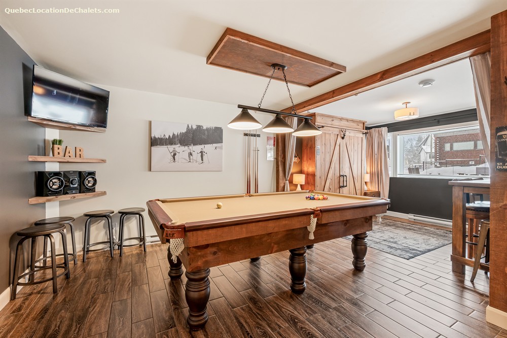 Le 24 des Quarante est un hébergement chaleureux et très lumineux de 3 étages. Situé tout en haut de la montagne de Stoneham, spacieux et bien aménagé, vous y trouverez une table de billard, un spa, un foyer au gaz, un BBQ, une grande cuisine, 2 télévisions, un internet haute vitesse permettant aussi le télé-travail, etc. Vous aurez ici toutes les commodités pour rendre votre séjour fort agréable et confortable.