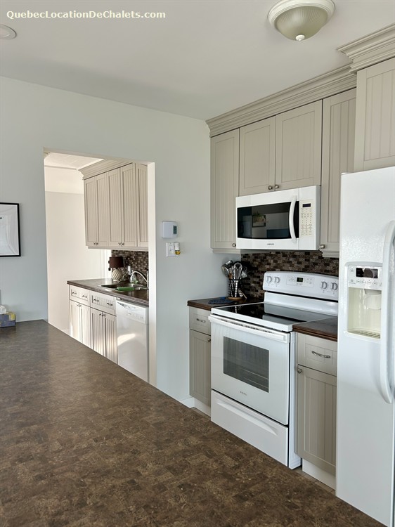 Cuisine moderne : Entièrement équipée (réfrigérateur, four, micro-ondes, lave-vaisselle, vaisselle et ustensiles).
