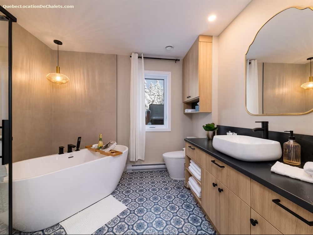 Ce chalet est un 'sanctuaire' privé vous offrant la promesse d'une expérience de détente et d'évasion exceptionnelle.  Vous pourrez passer des soirées agréables au coin du foyer intérieur et des moments de relaxation ultime dans le SPA. Un foyer extérieur vous attend pour des soirées inoubliables sous le ciel étoilé.  Sa situation privilégiée vous donne accès à une multitude d'activités que ce soit en hiver ou en été. Bien-être, confort et luxe résument parfaitement ce que vous ressentirez dans ce lieu apaisant immensurable.