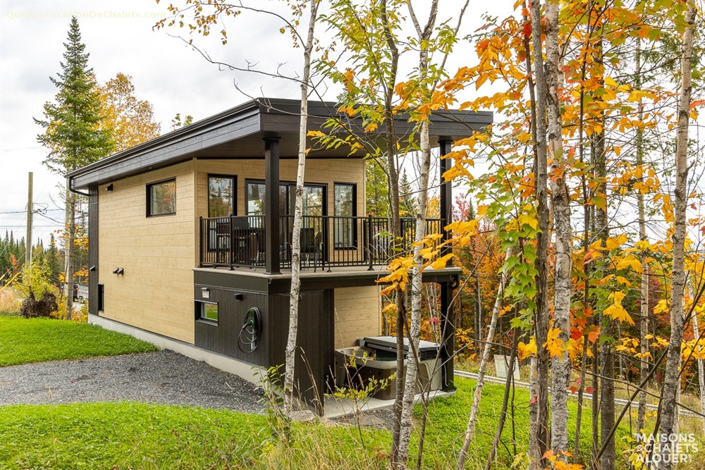Ce chalet à louer vous offrira des vues imprenables sur les paysages environnants. Relaxez-vous devant un chaleureux feu de foyer et laissez-vous apaiser par son crépitement. Pour compléter votre expérience, un spa privé quatre saisons est à votre disposition et vous pourrez profiter pleinement de la terrasse pour cuisiner ou simplement vous détendre en plein air.