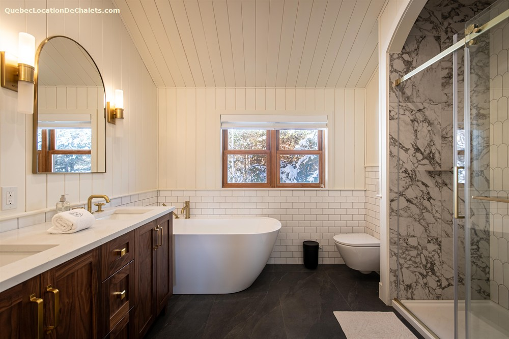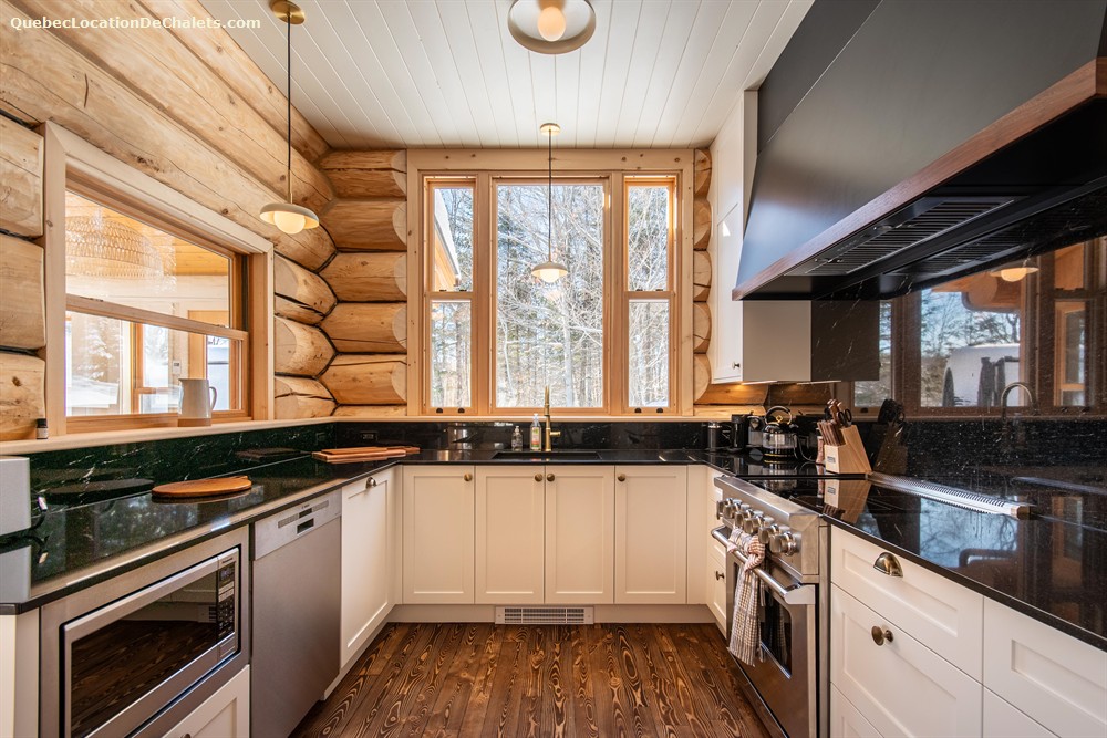 Ce chalet très spacieux comprend 4 chambres à coucher et 2 salons et 3 salles de bains complètes. Il peut loger aisément 12 personnes. La cuisine est équipée d’appareils électroménagers en acier inoxydable, incluant un lave-vaisselle et un four micro-ondes. D’autres commodités telles que la télévision par satellite, Internet Haute-Vitesse (Starlink), une laveuse et une sécheuse sont également fournies. Le chalet possède un chauffage de planchers chauffants au rez-de-jardin et un système de chauffage avec plinthes électriques à l’étage. Il est équipé d’un échangeur d’air et d’un air climatisé pour votre confort. Il est protégé par un système d’alarme relié à la centrale ainsi que d’un système de caméra à l’entrée.