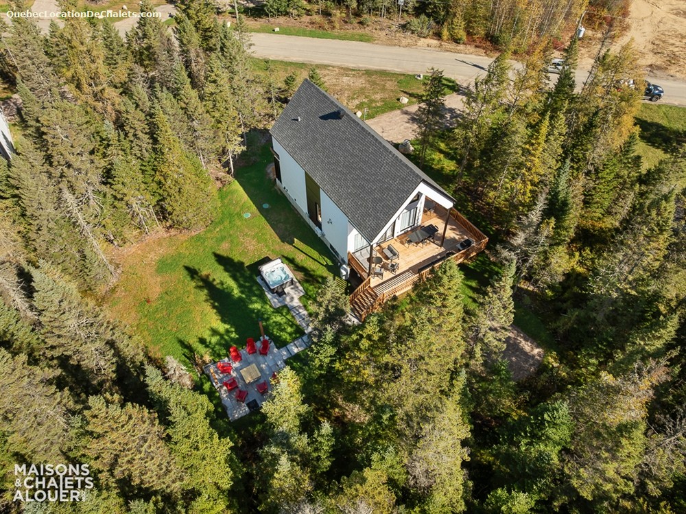 À l'extérieur, son grand terrain entouré d'arbres vous offre toute l'intimité recherché. L’immense galerie qui entoure le chalet vous invite à respirer l’air pur, à savourer un café matinal en écoutant le chant des oiseaux ou simplement profiter d'un bon souper en famille avec sa cuisine extérieur bien équipé. Le soleil couché, vous pourrez profitez du foyer extérieur ainsi que du spa privée 4 saisons afin de vous détendre sous un ciel étoilé.
