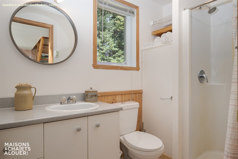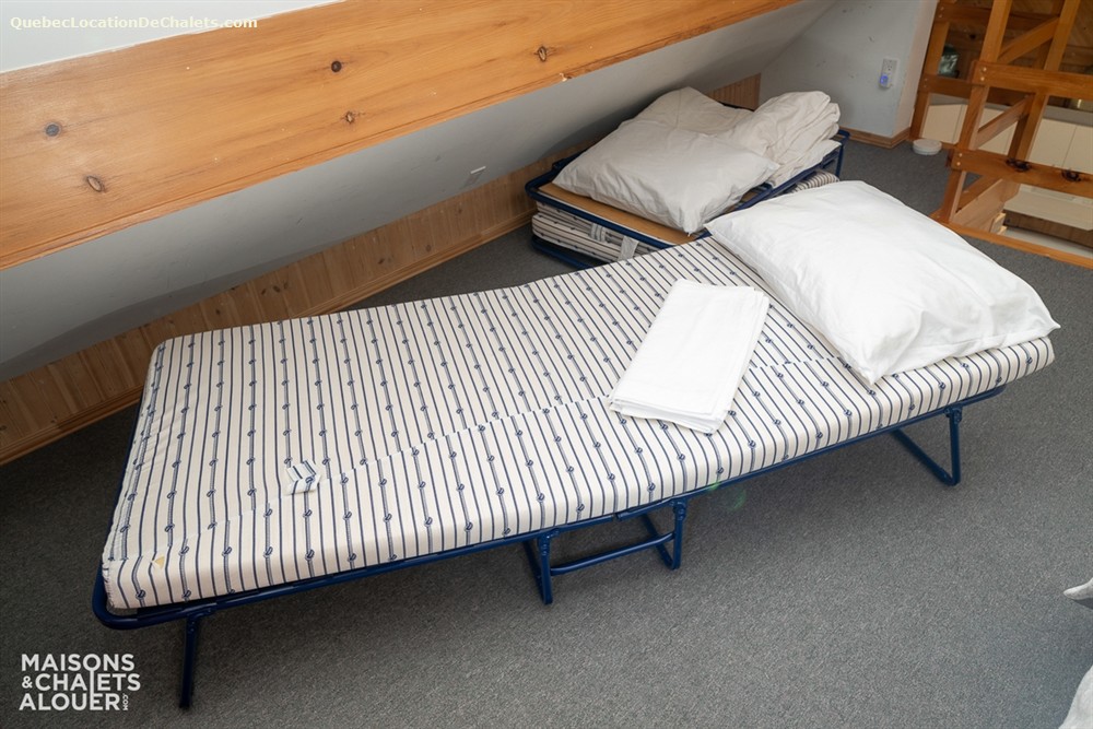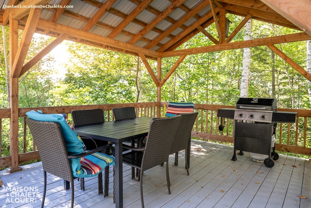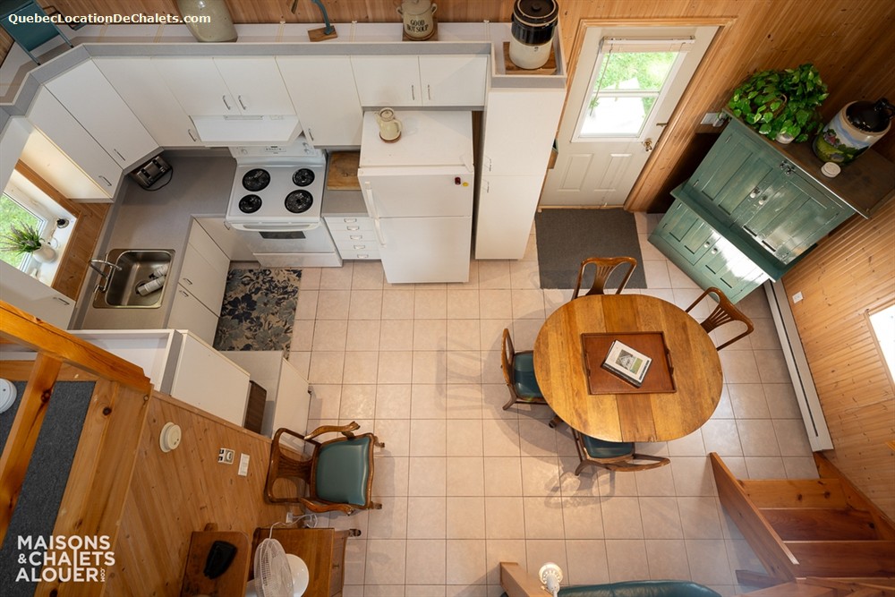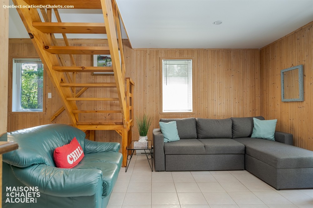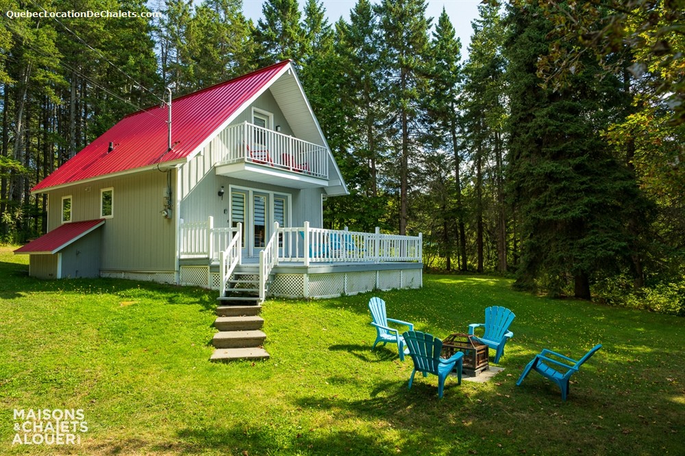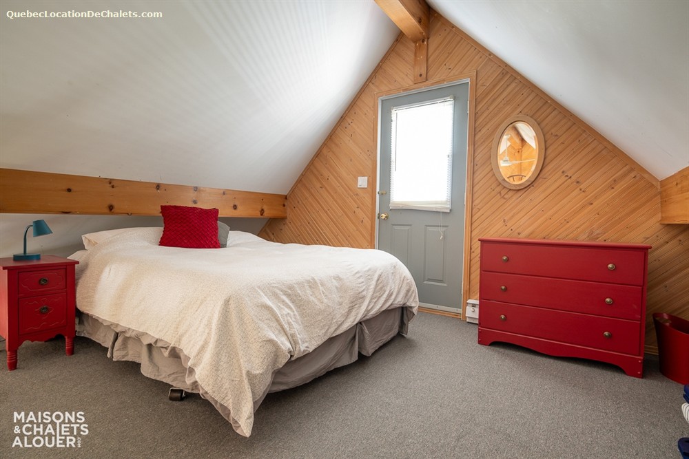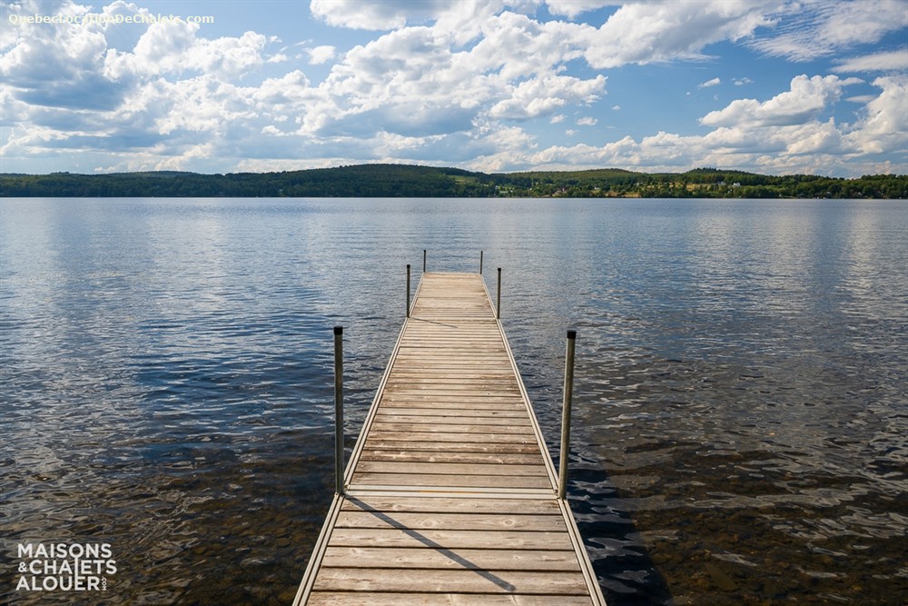 Afin de satisfaire vos besoins, le chalet possède une mezzanine avec un lit double et de la place pour y mettre un parc pour enfant. Également, le salon est équipé d'un divan-lit, pour ainsi accommoder un groupe de 4 à 5 personnes. La cuisine est toute équipée pour cuisiner. Finalement, prenez le temps de vous réveiller avec un bon café sur la terrasse donnant une fabuleuse vue sur le lac! Cette terrasse vous fera également vivre les plus beaux couchers de soleil sur le lac Mégantic! Vous aurez par ailleurs un accès privé au lac avec un quai. Cependant, vous devrez descendre des marches sur une pente très abrupte.
