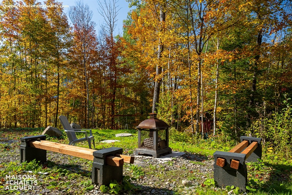 Veuillez prendre note que l'environnement du chalet est assez intime, mais que les autres chalets sont tout de même visibles à travers les arbres.