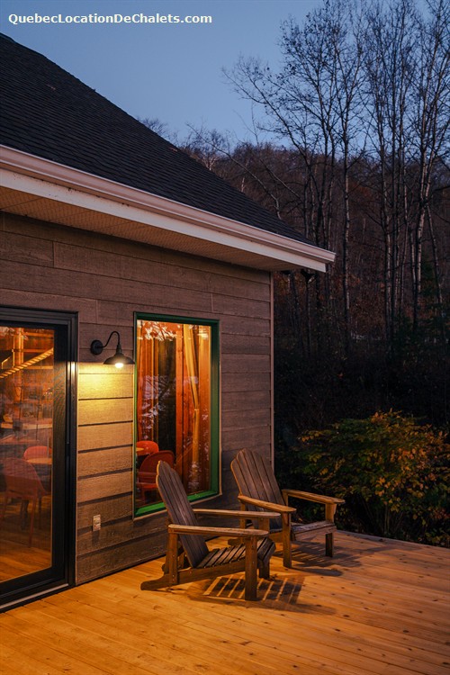Le chalet dispose de trois grandes terrasses, toutes orientées vers la rivière, la falaise et ces magnifiques couchers de soleil :