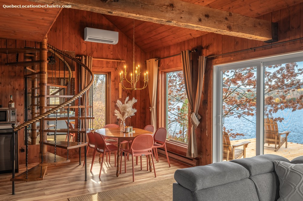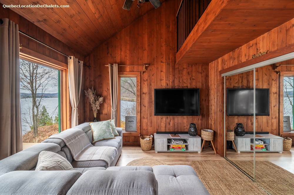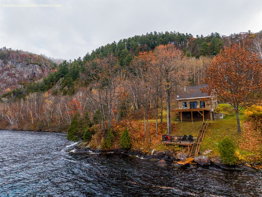 Ce superbe chalet de 2 chambres est situé directement en bordure de la rivière Saint-Maurice. Profitez d’une vue imprenable sur la rivière, les falaises et les couchers de soleil, un cadre idyllique pour vos 5 à 7 entre amis ou en famille. Sans voisin à proximité, l’intimité est totale.