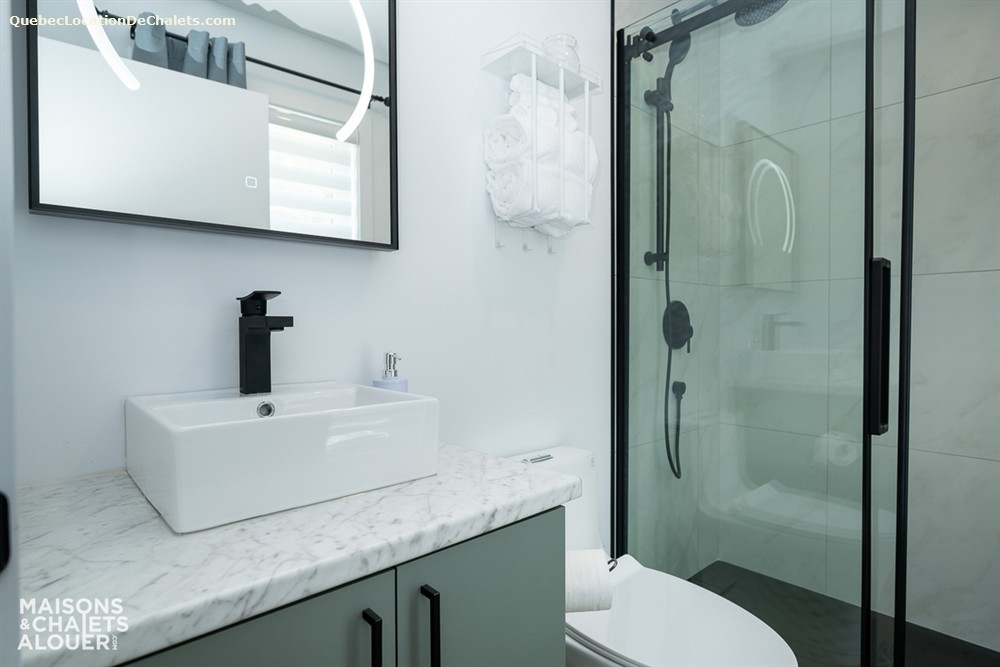 Rez-de-chaussée: Chambre #1 : 1 lit Queen / Salon, cuisine et salle