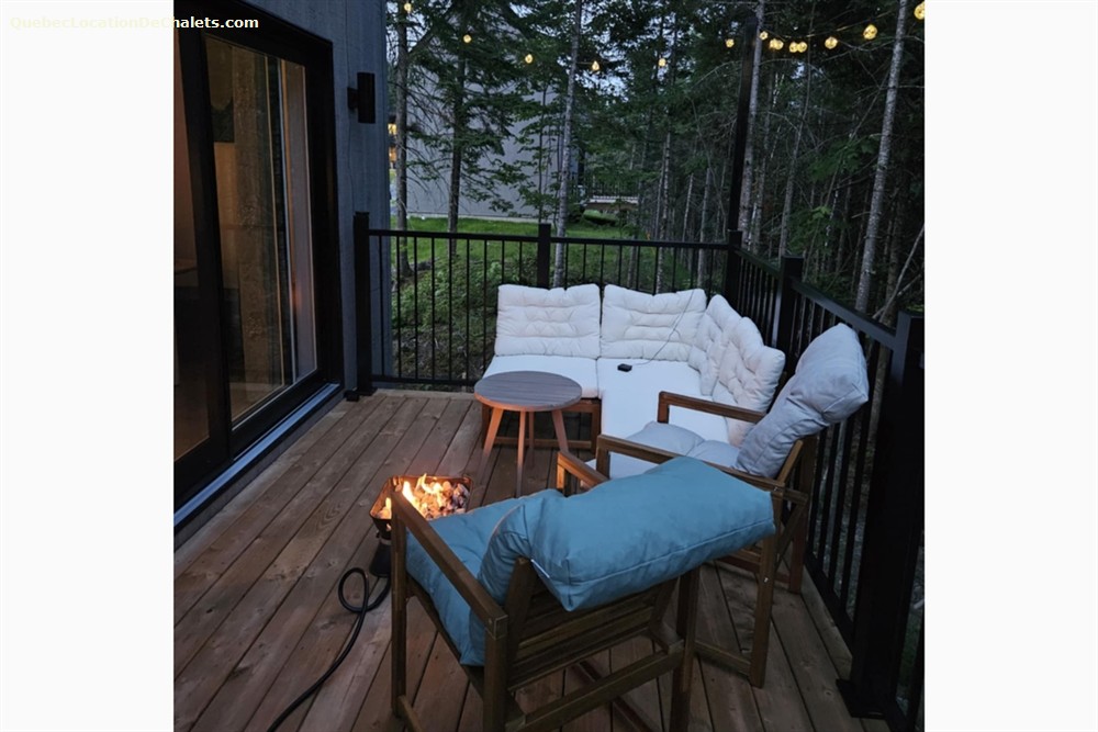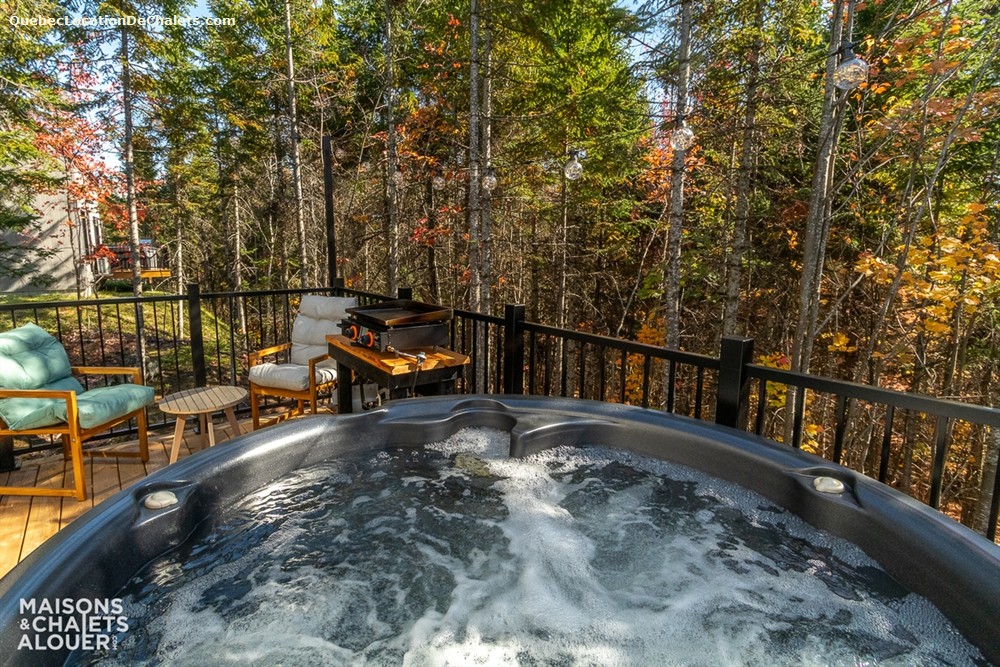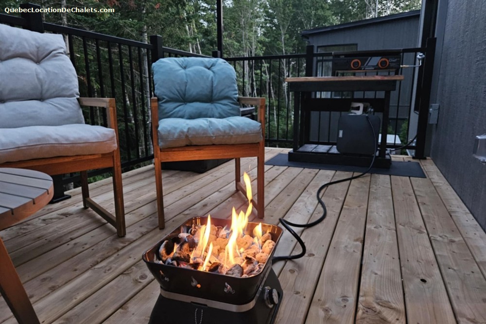 Terminez vos journées en savourant un bon repas sur le BBQ et détendez-vous dans le calme de la forêt. En été, profitez de la petite terrasse du chalet avec son mobilier extérieur et son foyer au propane.