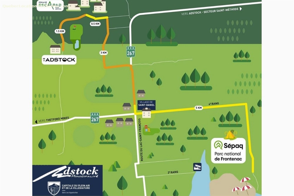Laissez-vous charmer par ce coquet chalet à louer de 450 pi², situé dans le paisible domaine Escapad à Adstock. À seulement 15 minutes de marche du Mont Adstock, vous serez aux premières loges pour profiter du ski alpin, du golf, ainsi que des sentiers de randonnée et de vélo de montagne. En hiver, partez directement du chalet en motoneige ou en VTT pour rejoindre la piste fédérée #25.