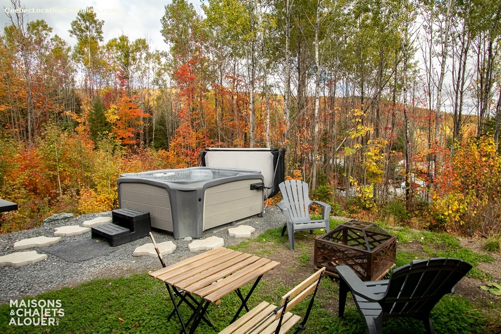 Le soir venu, savourez un repas sur le BBQ ou détendez-vous autour d'un feu de camp, en écoutant le crépitement du bois et en admirant le ciel étoilé. Pour un séjour encore plus ressourçant, un spa privé accessible en toutes saisons est à votre disposition.