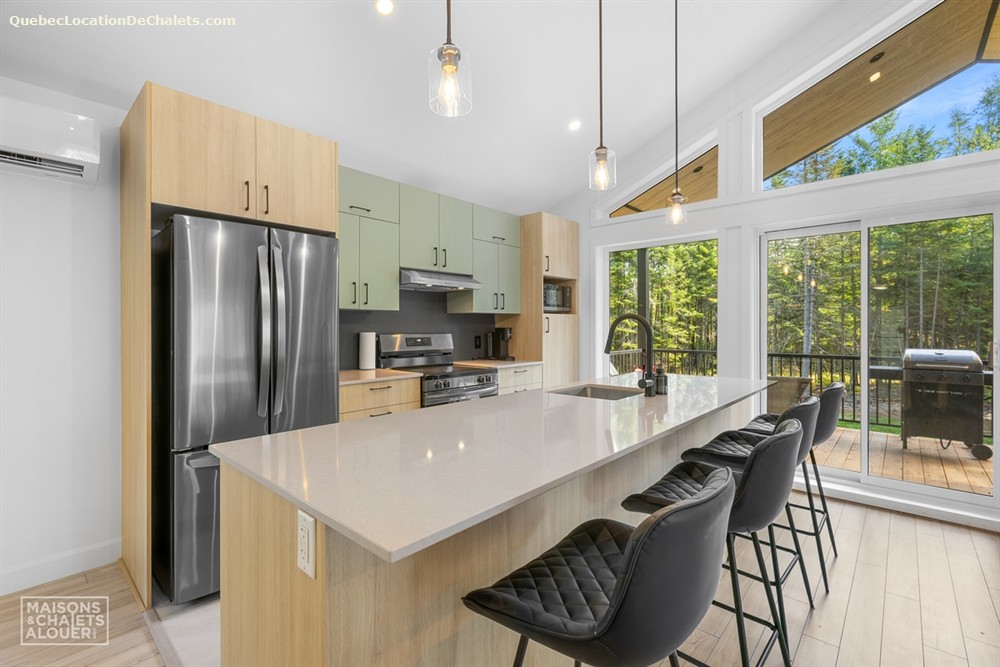 La Villa Aska saura vous charmer avec son décor moderne et épuré, ainsi que sa fenestration abondante. Avec sa cuisine lumineuse et bien équipée, vous pourrez cuisiner vos repas préférés en famille ou entre amis. Réunissez vous ensuite pour une soirée chaleureuse autour du foyer intérieur.