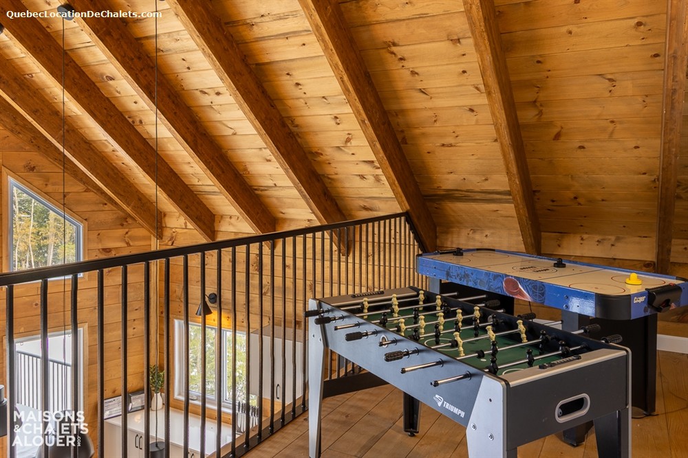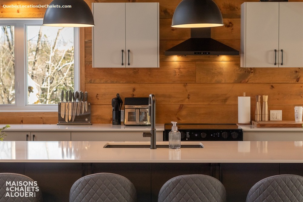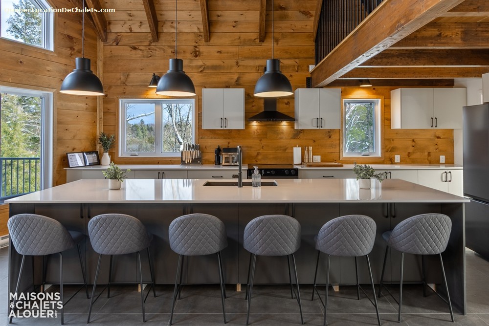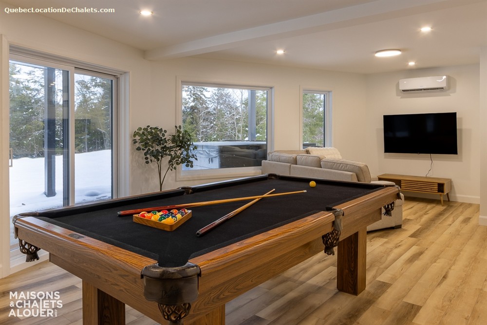 Le matin, la lumière glisse à travers les fenêtres et vient vous réveiller doucement. On se retrouve autour de l’îlot, on prépare un brunch sans se bousculer et on rit trop fort. L’après-midi, ça alterne entre parties de billard, randonnées et relaxation dans le spa 4 saisons. Au retour, les grandes conversations s’installent, les enfants construisent des cabanes de couvertures. Quand la nuit tombe, on enfile un manteau, on sort sous les étoiles, et le foyer extérieur devient le théâtre d’histoires et de chocolat chaud ou d’un verre de quelque chose d’un peu plus festif!