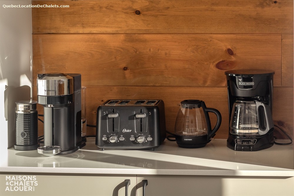 La cuisine entièrement équipée, quant a elle, est le cœur battant de la maison. Grand îlot convivial, vaisselle et batterie de cuisine complètes, grands appareils modernes, cafetière filtre et machine espresso pour les amateurs, on cuisine à plusieurs, sans se marcher sur les pieds. La longue table accueille les grandes tablées, les gâteaux d’anniversaire improvisés, les brunchs qui s’éternisent ou les souper fondue qu'on refait le monde!