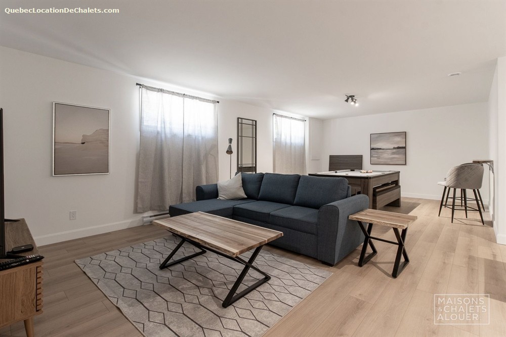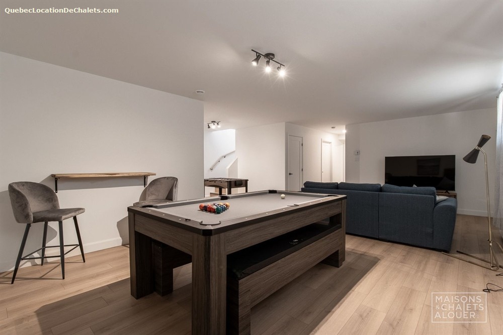 Étage inférieur : Chambre #3 : 1 lit Queen / 1 divan-lit dans le sous-sol avec table de billard et baby-foot / Salle de bain avec douche.