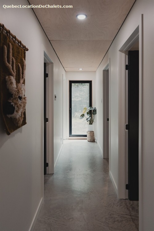 Ce plein pied compte 3 chambres avec des lits queen et une salle télé fermée avec un divan lit.