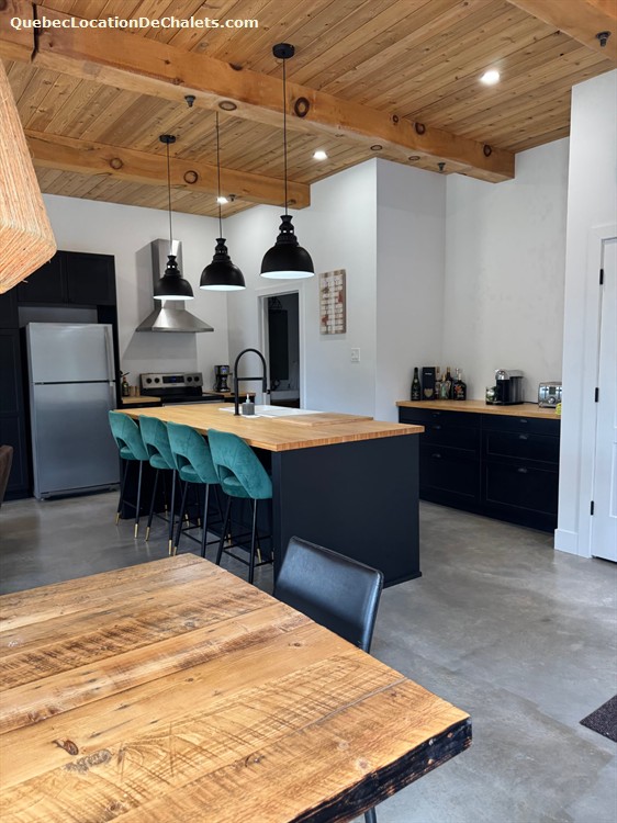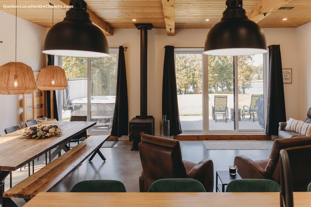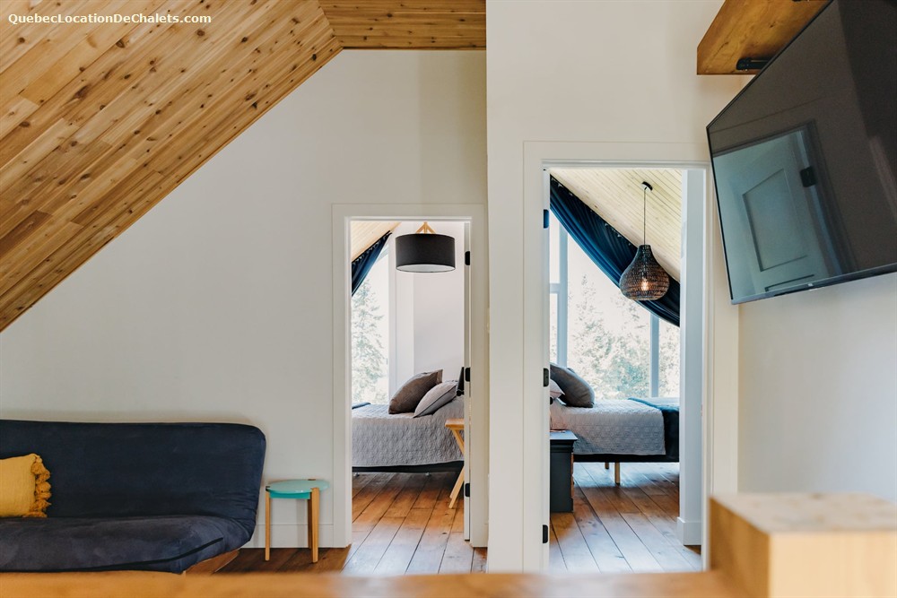 Le chalet peut accueillir jusqu'à 8 personnes confortablement avec ses 2 chambres chaleureuses et son aire commune lumineuse. Il est entièrement équipé : cuisine complète à aire ouverte avec sa grande table pour profiter de repas mémorables, salon accueillant. Restez au chaud avec son plancher chauffant, appréciez la literie de qualité, le BBQ, le foyer au bois intérieur et extérieur, tout ce qu'il faut pour un séjour réussi, été comme hiver.