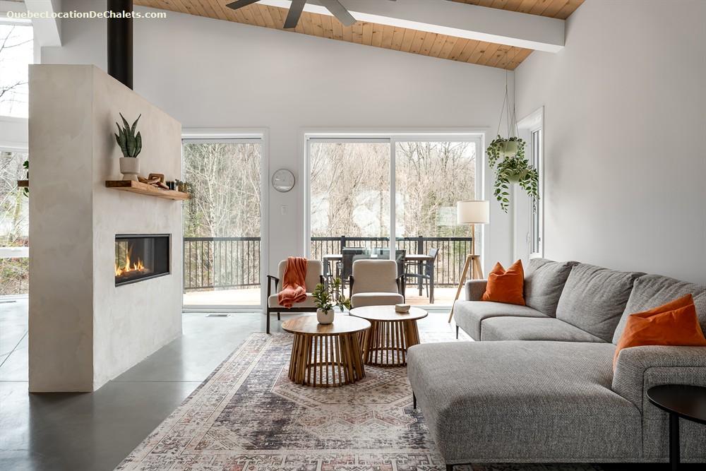 Les hauts plafonds cathédrale, les fenêtres abondantes, son grand foyer double-face et foyer extérieur rendrons votre séjour des plus agréables!
