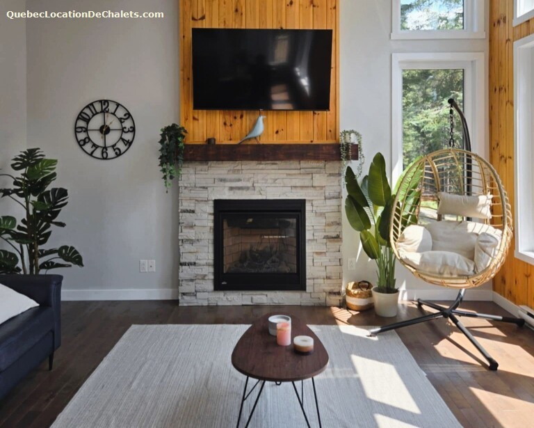 ? Salon principal avec foyer intérieur au gaz, idéal pour se relaxer