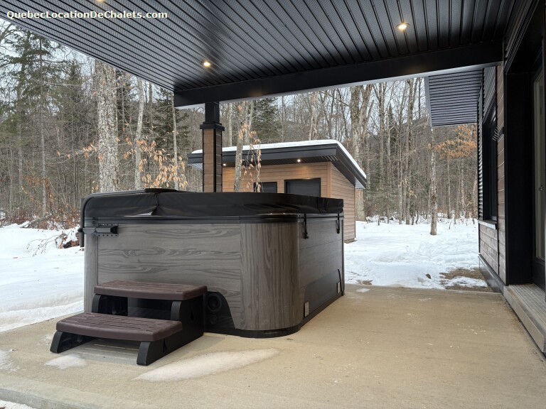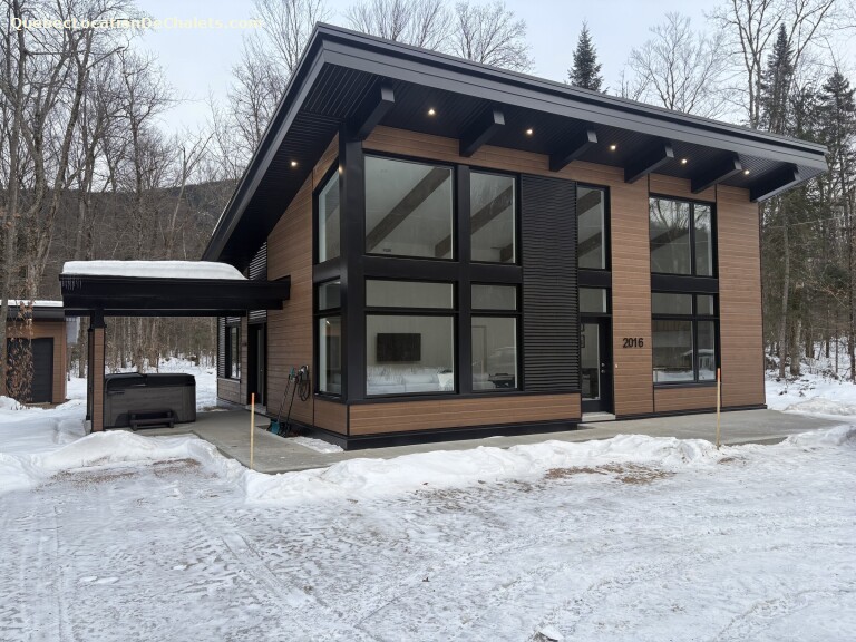 Dès votre arrivée, vous serez séduits par l'architecture élégante et l'aménagement pensé pour le bien-être. Les grandes fenêtres baignent l'espace de lumière naturelle et offrent une vue apaisante sur les arbres environnants. Le salon, avec son mobilier moderne et ses touches de bois chaleureux, invite à la détente autour d'un feu ou d'un bon verre après une journée d'activités.