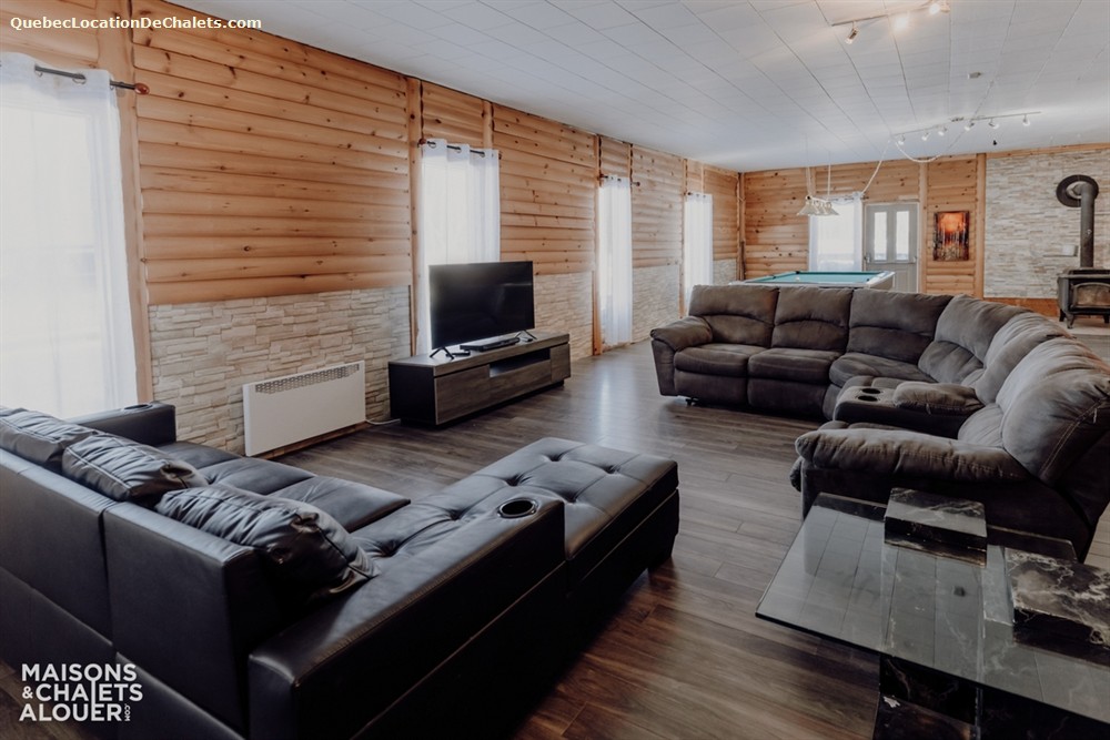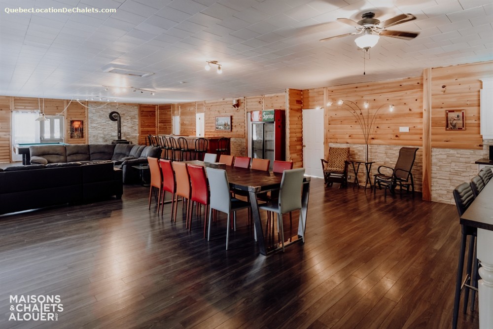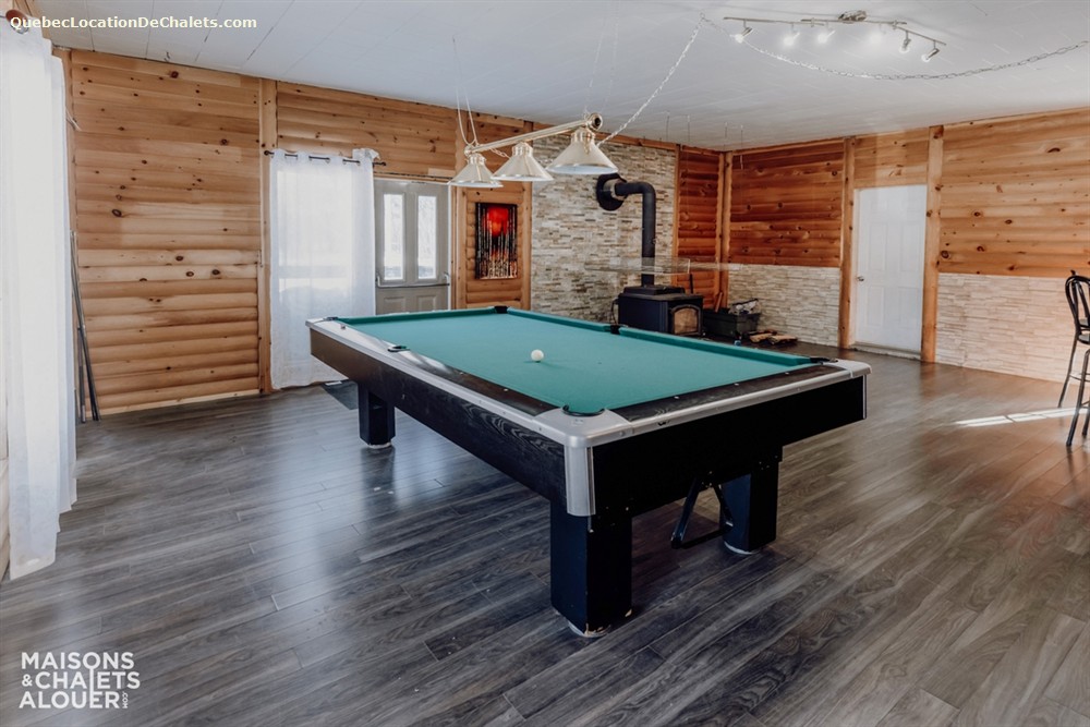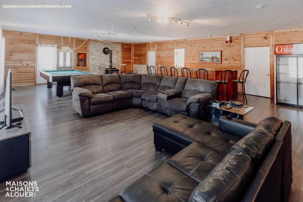 Pensée pour accueillir confortablement petits et grands groupes, cette propriété offre beaucoup d'espace pour recevoir vos invités. Le salon est d'ailleurs l'endroit rêvé pour relaxer près du foyer au bois, idéal pour les soirées cocooning après une journée en plein air. Pour les journées grises, le divertissement demeure au rendez-vous grâce à l'aire de jeux : table de billard, table d'air hockey et jeu de fléchettes sont disponibles afin de créer des souvenirs mémorables!