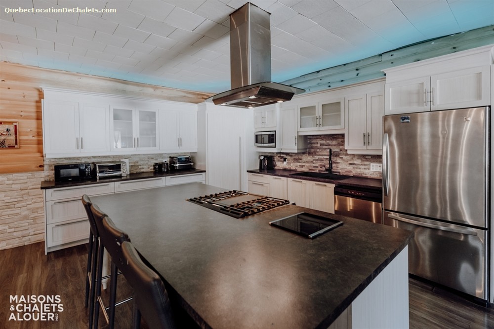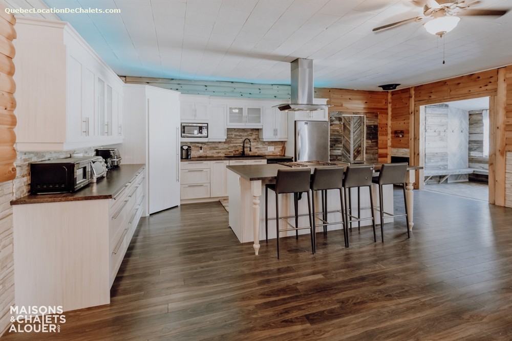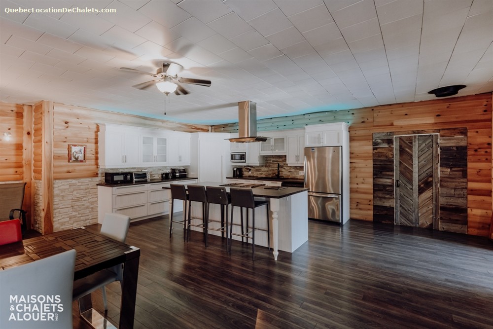 Vous apprécierez également la lumière naturelle qui pénètre à travers tout le chalet, particulièrement dans la cuisine et la salle à manger. Deux réfrigérateurs sont d'ailleurs à votre disposition afin de faciliter l'organisation, que ce soit pour un séjour intime ou une grande célébration.