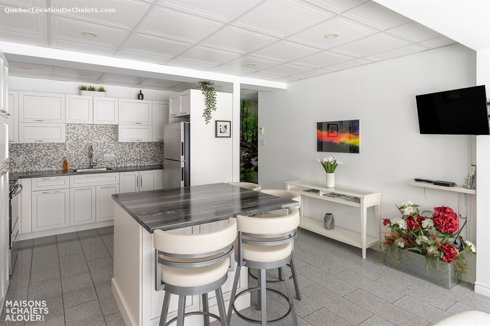 En vous baladant dans les aires communes du complexe, prenez le temps d'admirer les nombreux aménagements paysagers, faites un feu de camp dans les espaces prévus à cet effet, grimper le mur d'escalade, mis à votre disposition durant votre séjour. De retour au chalet, laissez-vous tenter par le spa privé fonctionnel à l'année. Les journées plus fraîches vous sembleront tout à coup beaucoup plus agréables, et les soirées d'été seront d'autant plus magiques. Terminez la journée en admirant le coucher de soleil ou réunissez vous autour d'un feu de camp, écoutez le doux murmure de la nature environnante et observez les étoiles qui scintillent dans le ciel.