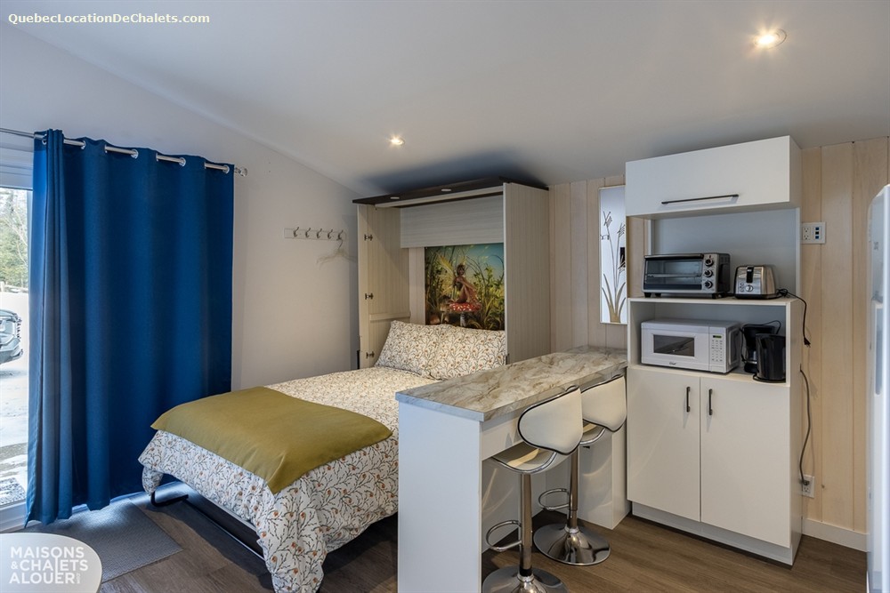 *Prenez note que les espaces communs, les sentiers, les embarcations ainsi que l'accès à l'eau sont partagés avec deux autres chalets qui font partie du complexe. Le complexe comprend le Domaine Convivial, Le Wagon de Marie et Le Chalet de Cèdres qui sont aussi disponibles pour la location sur notre plateforme*