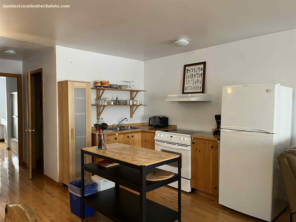 Condo de 3 chambres, spacieux et confortable pour 2 à 8 personnes maximum, avec son intérieur chaleureux en bois rond : 3 grandes chambres, 2 salles de bain et 1 salle d'eau indépendante, cuisine équipée, TV satellite,WIFI, salle à manger, terrasse privée avec meubles de patio et BBQ.