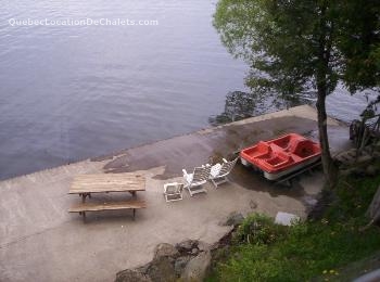 Directement (5 mètres) sur le bord du Lac Memphremogog. 50 pieds de rive privée. Côté est, face à Howl's Head, juste au sud de Fitch Bay, sur la partie large du lac, face aux couchers de soleil. Très grand quai. (16x40)Ancrage à bateau. Baignable. Idéal pour la navigation.