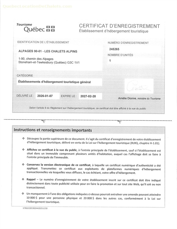 Résidence de tourisme enregistrée à la CITQ