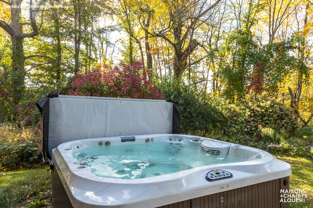 Cette charmante maison de vacances est au cœur de la campagne dans le Canton de Cleveland, près de Richmond. Bâtie au bout d’un chemin sans issue, Le chalet à louer La Clé des Champs vous assurera des moments de tranquillité inoubliables et des paysages magnifiques. Profitez du terrain pour vous reposer sous les arbres en vous laissant bercer par le chant des oiseaux et du vent. En été, venez-vous rafraîchir et vous amuser dans la piscine de 18 pieds, ou pour des moments de détente, laissez-vous tenter par le spa privé 4 saisons. Loin de toute pollution lumineuse, l’endroit est excellent pour admirer le ciel le soir venu. Réchauffez-vous au près d’un feu de camp et profitez-en pour faire griller quelques guimauves avec la famille. Le bois est fourni pour vos feux extérieurs et pour le poêle à bois vitré de la maison. Pendant la saison hivernale, vous pourrez profiter des joies de l'hiver en pratiquant la raquette et le ski de fond. Ce beau chalet très lumineux sur 2 étages offre au rez-de-chaussée une cuisine et une salle à manger à aire ouverte ainsi qu’une chambre avec salle de bain privée. Le salon, au même étage, vous accueillera dans tout le confort possible, dans un décor original et champêtre qui offre un dépaysement assuré. À l'étage se trouvent 3 chambres fermées et une salle de bain avec bain sur pattes. La demeure possède donc un total de 4 chambres fermées. Il y a un total de 3 lits Queen, 2 lits Doubles et un futon au salon. La propriété peut alors accueillir un maximum de 12 personnes. Rez-de-chaussée : Cuisine et salle à manger à aire ouverte / Salon : 1 futon Double / Chambre #1 : 1 lit Queen + 1 salle de bain privée (avec une douche + l'ensemble laveuse-sécheuse) Étage supérieur : Chambre #2 : 1 lit Queen / Chambre #3 : 1 lit Queen / Chambre #4 : 2 lits Double / Salle de bain avec bain sur pattes.