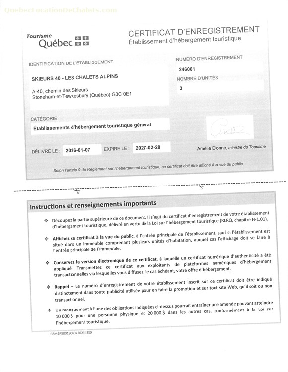 Résidence de tourisme enregistrée à la CITQ
