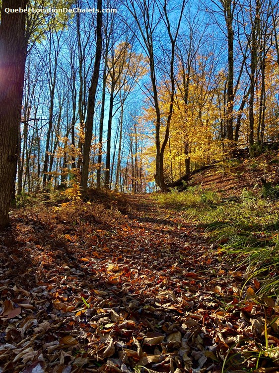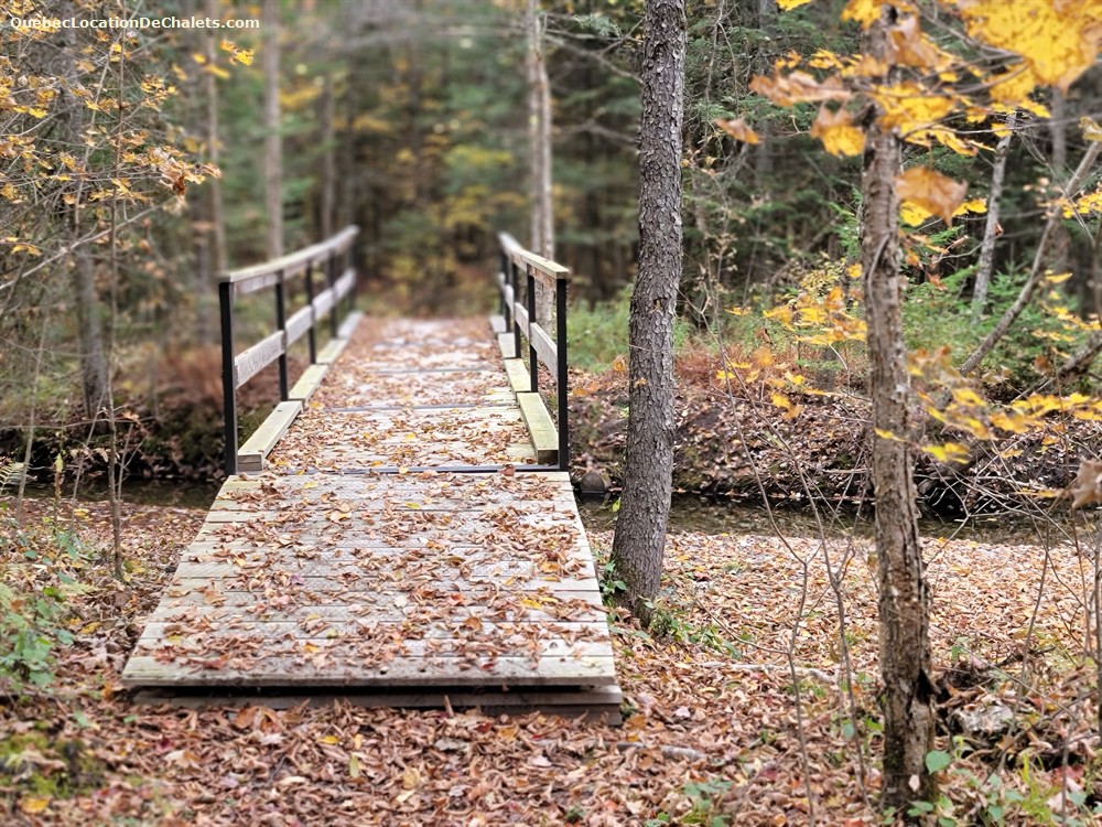 Charmant chalet tout en bois situé à Eastman en Estrie (1 h 15 de MTL), au pied du versant sud du Mont Orford, dans un Domaine privé de 10000 acres, en pleine nature. Le chalet situé sur un terrain tout boisé de 240 000pc. Pas de voisin. À votre porte, une forêt mature sillonnée de 17 km. de sentiers privés (marche en pleine nature, fatbike, vélo, raquette, ski de fond) et de ruisseaux, de chutes et de petits ponts. Deux lacs, plage, baignade, paddle board, patinoire l'hiver. Le chalet est tout près du village, épiceries, pâtisserie, SAQ etc. À 15 minutes du parc national du Mont- Orford. Tout prêt de ski Bromont, Sutton et Owl's Head. À une minute du sentier de la Montagnarde. Le chalet, qui vous offre, tranquillité et confort, possède un foyer intérieur, un coin feu extérieur, une mezzanine pour relaxer, une véranda 4 saisons toute fenestrée donnant sur la nature, dans un cadre idyllique. Très grande terrasse arrière, 2 salles de bain, 3 chambres, Internet haute performance, télé fibre optique. Cuisine vraiment ultra équipée. Chalet haut de gamme, immensément confortable, soutien personnalisé 24/24, 7/7 pendant votre séjour. Laissez la nature vous habiter. Sincèrement désolé, pas d'animaux