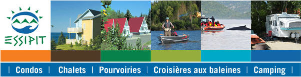 46, rue de la Réserve, Essipit, Québec, Canada, G0T 1K0, soit au Centre de réservation et information Essipit. Heures d'arrivée et de départ du chalet: arrivée à 16 h et départ à midi.