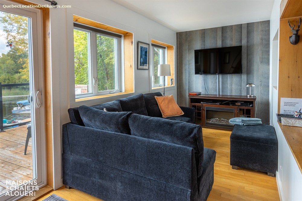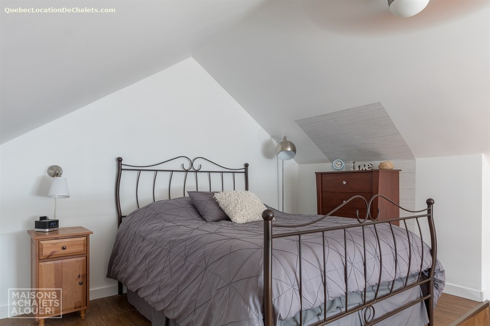 Situé directement sur le bord du Lac Boissonneault, à St-Claude dans les Cantons de l'Est, ce chalet à louer sera grandement apprécié pour les séjours en famille ou entre amis. Vous pourrez amplement profiter des plaisirs de l'été lors de votre séjour. La baignade y est agréable, avec un fond de lac en petites roches et en sable. La pêche y est bonne; les prises les plus fréquentes sont de l'achigan, du doré jaune, de la perchaude, du brochet et du crapet. Si vous avez une embarcation, une descente de bateau payante est disponible à la marina, soit au camping du coin. Pendant le séjour, vous pourrez laisser votre bateau amarré au quai du chalet. Vous trouverez aussi à 5 minutes à pied du chalet, un parc où les enfants peuvent aller jouer ainsi que des sentiers et une petite plage municipale. Le parc est sur le chemin Hamel; juste un peu plus loin, passé le chalet. Vous pourrez terminer la journée avec un bon repas sur le BBQ ou en vous détendant autour d’un feu de camp sur le bord de l’eau. Un spa privé 4 saisons couvert est également à votre disposition, vous offrant une vue directe sur le lac tout en vous permettant de rester à l’abri lors des températures moins clémentes. *** Entre la fin de semaine de l'Action de grâce et la fin de semaine des Patriotes, nous ne pouvons garantir que le quai soit installé et que les embarcations nautiques soient disponibles. *** DESCRIPTION DE L'INTÉRIEUR Rez-de-chaussée: Cuisine / Salle à manger / Salon / 1 chambre avec 1 lit Double / 1 chambre avec 2 lits superposés Double / Salle de bain. Mezzanine: Chambre avec 1 lit Queen Étage intérieur: Salle de jeux et gaming avec 1 divan-lit ** Prendre note que la hauteur du sous-sol est au plus bas à 5 pieds 6 pouces **