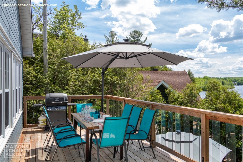 En hiver, des sentiers de raquette et de ski de fond parsèment la région. Nous nous ferons un plaisir de vous conseiller les meilleurs endroits où partir en randonnée. Si la glace le permet, vous pourrez également patiner et pêcher sur la glace. Le spa privé 4 saisons couvert vous offre une bonne intimité et vous permet de profiter de celui-ci beau temps, mauvais temps. Les grandes baies vitrées de ce chalet à louer vous assureront beaucoup de luminosité et une vue sur le lac, en tout temps. La salle à manger et la cuisine à aire ouverte donnent directement sur la terrasse, où vous pourrez déguster les repas soigneusement préparés dans la cuisine bien équipée. Le sous-sol, également très lumineux, donne sur la galerie et la cour arrière où l’on retrouve le spa. Vous trouverez un divan-lit au salon ainsi que le poêle au bois, avec bois fourni.