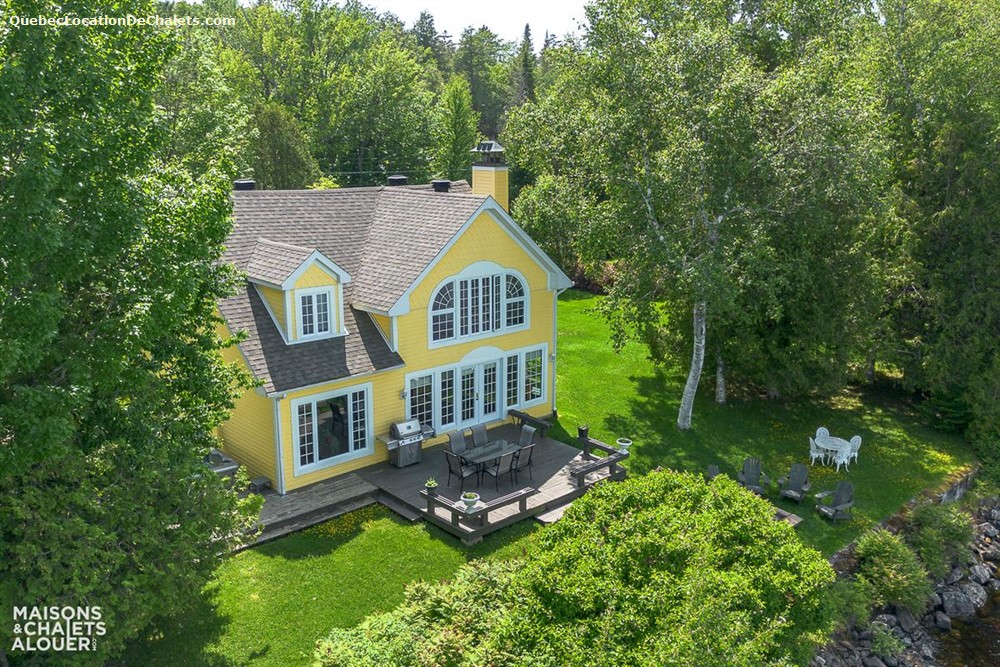 Ce chalet peut accueillir jusqu’à 12 personnes et en coucher 10 confortablement. Sa décoration de style champêtre ajoute beaucoup de charme et de cachet à l’endroit. L’abondance de fenêtres permet une grande luminosité tout au long de la journée et vous pourrez profiter de la vue magnifique qui s’offre à vous, peu importe où vous vous trouvez dans la maison.