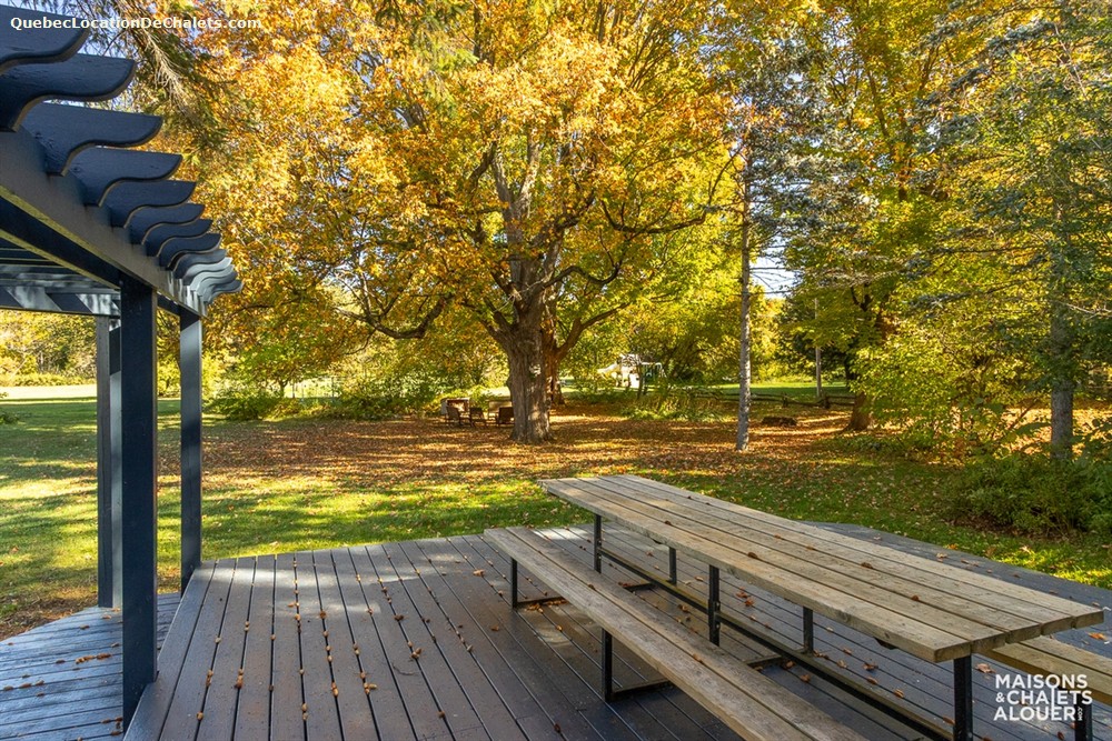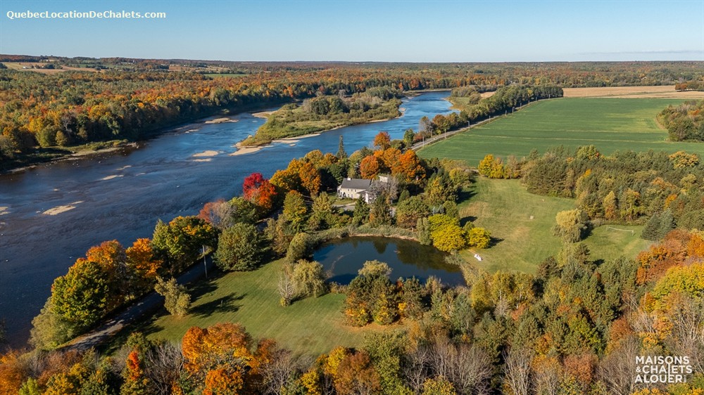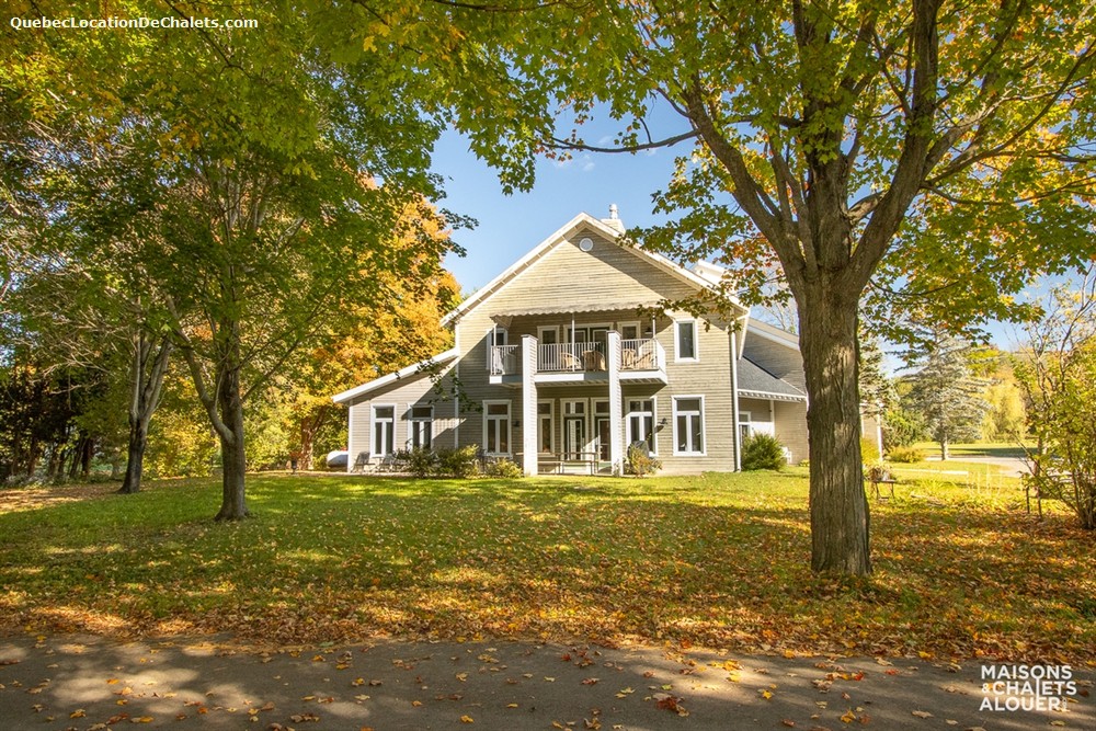 L’auberge surplombe la rivière St-François, et offre de grands espaces. Elle saura accueillir 36 personnes avec son immense salle à manger et salon partagé par un magnifique foyer au gaz offrant chaleur et ambiance. Vous y trouverez un grand spa, un sauna, un bain thérapeutique et une salle de jeu. Cette partie de la propriété offre 7 salles de bain et 1 salle d’eau.