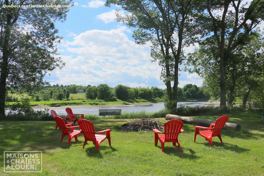 Cette magnifique propriété située en bordure de la rivière St-François, à St-Félix-de-Kinsgey, aux limtes des Cantons-de-l'Est et du Centre-du-Québec, est l’endroit rêvé pour profiter pleinement de vos vacances. Ce chalet à louer moderne et chaleureux, se prête autant aux grandes familles qu’aux gens d’affaires puisqu’il peut accueillir jusqu’à 26 personnes. Il est équipé de tout le confort de la vie moderne avec la touche rustique-chic qui plaira à tous. La véranda possède de grandes fenêtres laissant entrer la lumière naturelle et vous donne une vue sur les 4 acres de terrain entourant la propriété. Vous apprécierez l’immense salon où le divertissement est à l’honneur : table de billard, table de baby-foot, écran plat grand format, foyer au bois. Le terrain aménagé offre plusieurs possibilités pour vous amuser ou vous détendre, dont une terrasse avec spa (6 places), un endroit pour les feux à ciel ouvert, un terrain de volley-ball ainsi qu’une descente pour les embarcations (kayak, canot fournis sur place). Veuillez noter que la rivière est peu profonde à certains endroits, elle ne se prête qu’aux kayaks, canots. Quand la rivière est haute, le courant peut devenir très fort. Toujours porter des vestes de sauvetages. Gens d’affaires : La salle à manger qui peut aussi tenir lieu de salle de conférence possède beaucoup de cachet et d’élégance. Cette salle bien éclairée est équipée d’un contrôle de lumière à intensité variable et de rideaux opaques si vous désirez faire des présentations sur projecteur (non-fourni). Également, la cuisine toute équipée possède un percolateur grande-capacité afin d’accommoder de grands groupes. Ce chalet a tout pour plaire ! Répartie sur 3 étages, vous y trouverez 8 chambres fermées équipées de lits Queen neufs et décorées au goût du jour, 2 salles de bain complètes, une cuisine équipée avec les électroménagers les plus récents (percolateur, grille-pain, cuisinière, réfrigérateur et lave-vaisselle en inox).