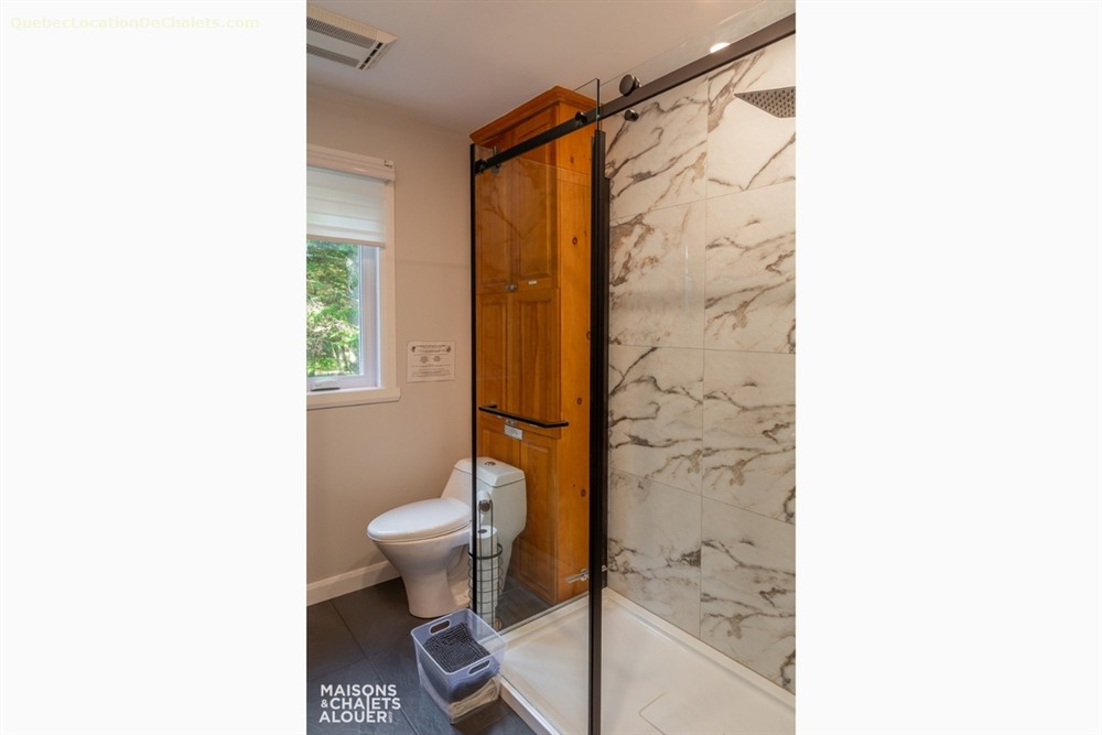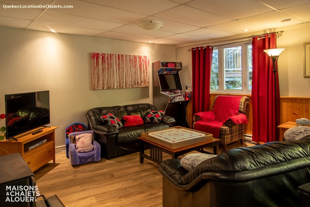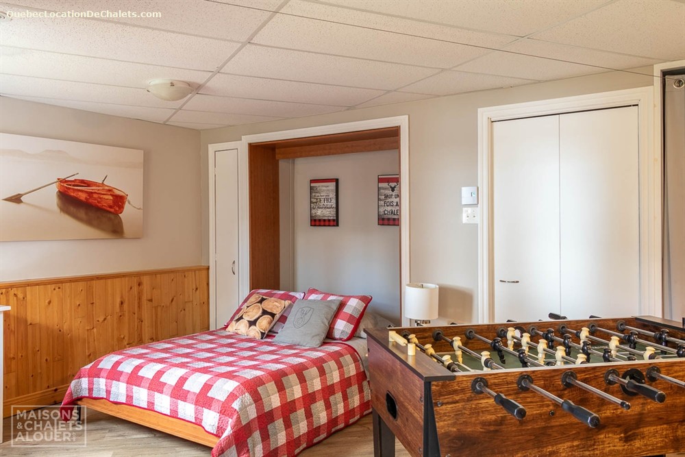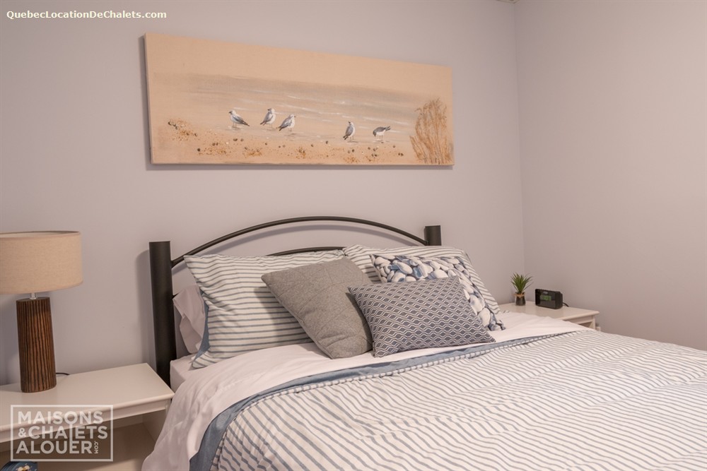 L’entrée à l’eau se fait graduellement, en pente douce, avec un fond en petites roches. Les enfants de tout âge y trouveront leur compte. Nous mettons également à votre disposition des embarcations afin d’aller vous aventurer sur les eaux calmes et les rives du lac. N’oubliez pas votre canne à pêche : une grande variété de poissons, dont 3 espèces de truite sillonnent le lac. Si vous possédez un bateau à moteur, vous pourrez l’amarrer au quai privé de la propriété. La descente à l’eau publique de la municipalité de St-Marthyrs Canadiens est à proximité du chalet à louer. Important : Règlements concernant les embarcations